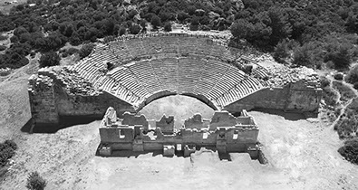 Geç Antik Dönemde oturma sıraları ile orkestra arasına, devşirme malzemelerle örülen yüksek bir duvar eklenmiştir. Bu düzenleme, tiyatronun orkestrasında artık gladyatör ve vahşi hayvan dövüşlerinin yapıldığını işaret etmektedir.