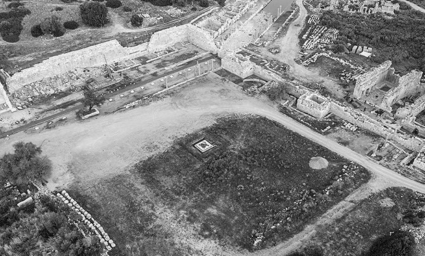 Merkez Agora, Meclis Binası ile Liman Caddesi’nin güney bitimi arasındaki düzlükte yer alır. Geç Antik Dönem surlarının inşasında birçok yapı bloğunun kullanılması nedeniyle büyük oranda tahribata uğramış agoranın sadece Batı Stoa Kuzey Kapısı, Batı Stoası’nın bir bölümü ile Doğu Stoası’nın çok kısa bir bölümü günümüze ulaşabilmiştir. Tiyatro, meclis binası, Liman Caddesi, Nero Hamamı ile gymnasion (eğitim yapısı) ve latrina (tuvalet) gibi kamu yapıları Merkez Agora çevresinde konumlandırılmıştır. Agora yoğun tahribata uğramış olsa da gerek formu gerek mimari elemanları hakkında birçok veri günümüze ulaşmıştır. Dörtgen formlu olan agoranın sadece batı ve doğu stoalarının planı ve mimarisi anlaşılabilir durumdadır. Bununla birlikte, kuzeyinde Nero Hamamı cephesiyle uyumlu stoalı bir bağlantısı da beklenmektedir. Kuzey-güney uzunluğu tam olarak bilinemeyen agoranın batı stoasının günümüze ulaşan orta sütun dizisinin uzunluğu 120 metredir. Agora Batı Stoa iki sıra sütun dizisine sahip olup cephesi doğuya bakmaktadır. Ana girişleri kuzey ve güneydedir; kuzey girişi iki geçişlidir ve 13,56 metre genişliğinde olan Batı Stoa, mimari düzen ve malzeme açısından Liman Caddesi, Doğu Portik’le benzer özellikler taşır. Stoanın orijinal yapısında önde granit, içte yivli beyaz mermer sütunlar kullanılmıştır. Cephe sütunları İon, iç bölümdekiler Korinth düzenindedir. Agora’nın doğu-batı yönündeki genişliği 77 metre olarak ölçülmüştür. Agora Doğu Stoa’nın stylobatı (tabanlık) ve kuzey başlangıcı, buranın da Batı Stoa gibi bir mimari düzene sahip olduğunu ve aynı zamanda planlandıklarını gösterir. Planı Batı Stoa’dan farklı olan Doğu Stoa tek bölümlü olup genişliği 7 metredir ve eğimli çatıyla kapatılmış olmalıdır. Doğu Stoa kapısı doğrudan Nero Hamamı’nın güneyine açılmaktadır. Doğu Stoa’nın hemen arkasında ve stoa arka duvarına bitişik yapılmış latrinanın girişi olasılıkla Doğu Stoa girişiyle birlikte düzenlenmiş olmalıdır. Yoğun tahribat nedeniyle, agoranın güneyiyle ilgili şimdilik hiçbir veri bulunmamaktadır. Ancak bu alanda, doğu ve batı stoayı kuzeydeki gibi bağlayan bir stoanın varlığı beklenmektedir. Agora’nın yaklaşık ortasında 4,5×4,5 metre ölçülerinde kare planlı bir anıtsal altlık bulunmaktadır. Anıt gerek konumu gerek kaidenin işçiliğinden anlaşıldığı üzere Patara için önemli kişi ya da kişilerin onuruna dikilmiş olmalıdır. Anıt, bir tanrı/tanrıça/kahraman veya kente hizmeti geçmiş önemli şahsiyetlere ait olmalıdır.