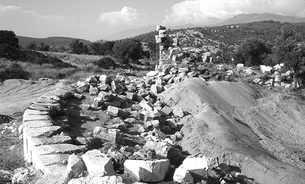 Meclis (ya da eski Helence adıyla bouleuterion), agoranın batı stoasının (revaklı yapı) arkasında, tiyatronun kuzeyinde konumlanır. Yapının mimarisini dikdörtgen ve yarım daire olmak üzere iki temel geometrik form belirler. Yaklaşık 1300 metrekarelik bir alana oturan yapının yüksekliğinin, çatı seviyesine kadar korunmuş bir halde günümüze ulaşan kuzeybatı köşe duvarı sayesinde 17 metre olduğu bilinmektedir.