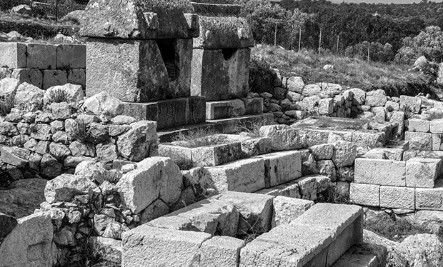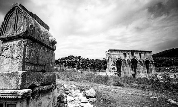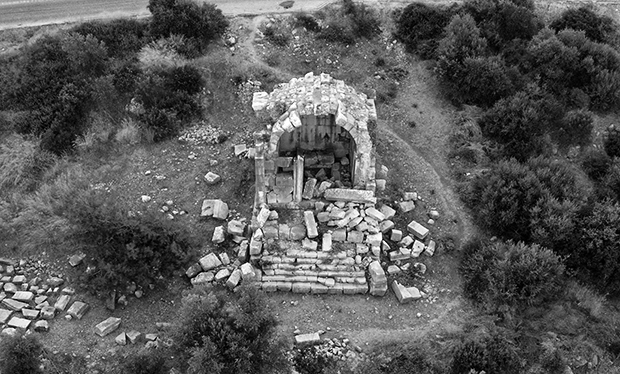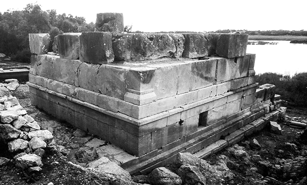 Markia Anıt Mezarı, 8 basamaklı yüksek bir podyum üzerine oturtulmuş, köşe plasterleri Dor, cephedeki sütunları Korint düzenindedir. Üst örtü, üç fascialı arşitrav, dış bükey bir friz ve üçgen alınlıkla tamamlanmıştır. İki adet lahit yerleştirilen “Γ” planlı sekinin bulunduğu kare planlı mezar odası tavanı tonoz örtülüdür. Podyumun kuzey cephesinden girilen tek hyposorion (alt mezar odası), dikdörtgen planlı ve tonoz örtülüdür. Yazıttan anlaşıldığı üzere, mezarın içinde iki lahit bulunmaktaydı. Lahitlerden biri Markia ve kocası Alkimos için, diğeri de babası ve kardeşi içindir.